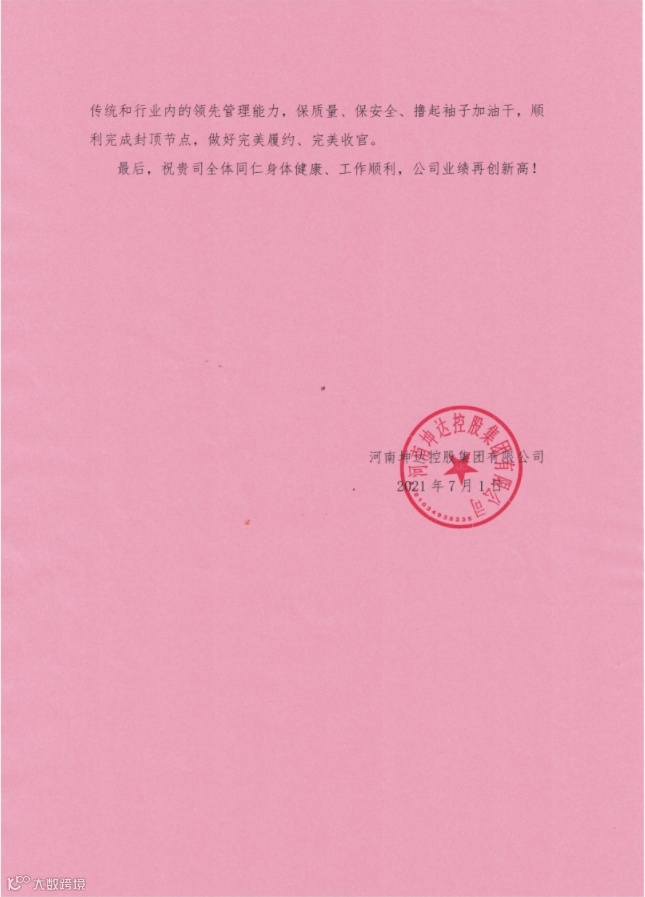 7·20洪灾面前,项目团队火速成立党员先锋队投入社会救援,在一天时间内完成了新郑市洧水公园2000立方米的清淤工作。面对多点多发的疫情,项目部在做好自身疫情防控的同时,主动协助当地社区建设核酸检测点、派出志愿者协助完成全员核酸检测。公司紧急承建禹州临时流调观察点,项目团队第一时间驰援现场。在急难险重任务面前,项目部每一位员工都是急先锋。