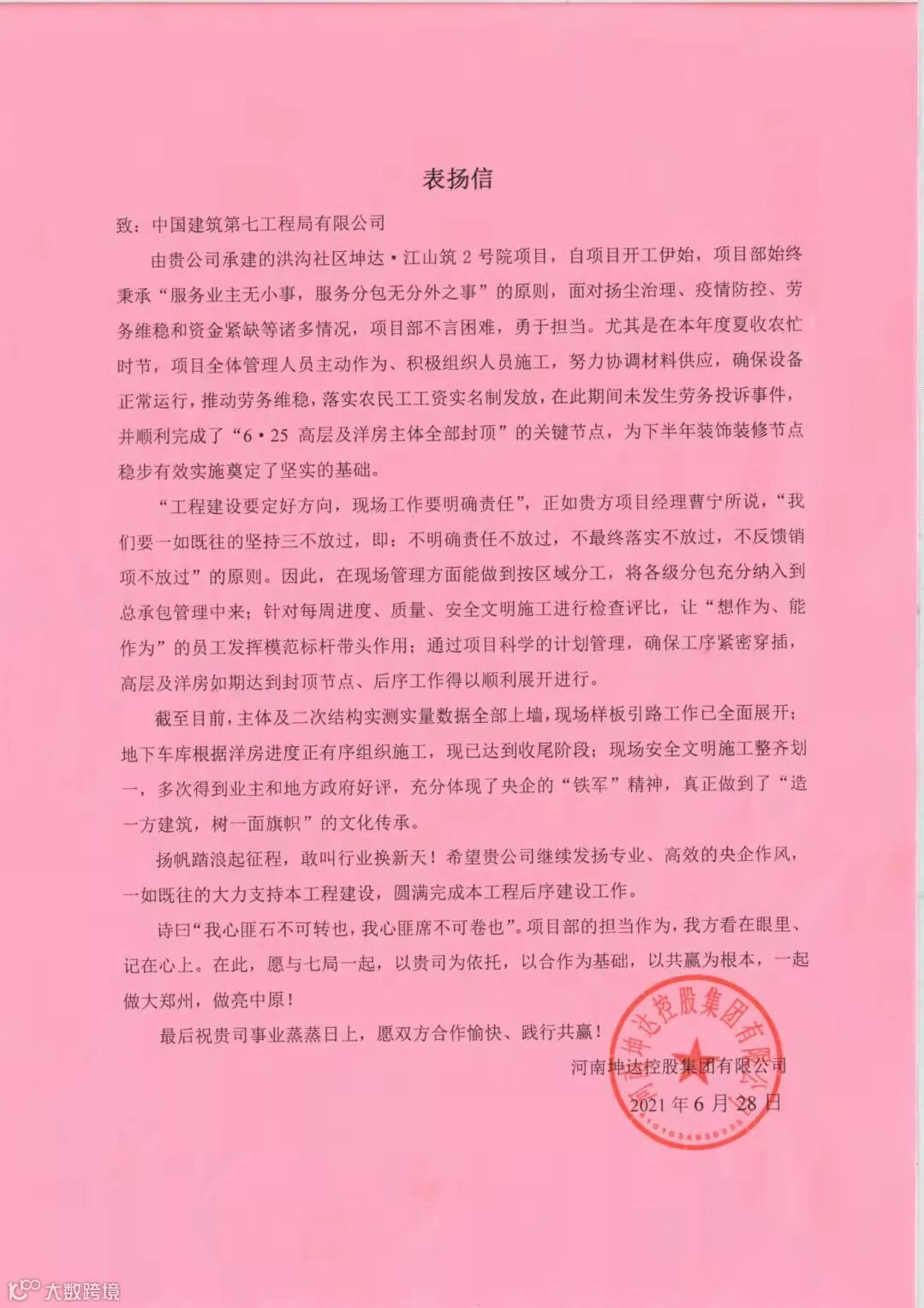 近日,从河南分公司承建的
