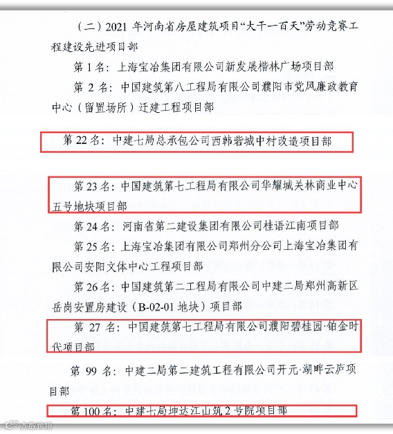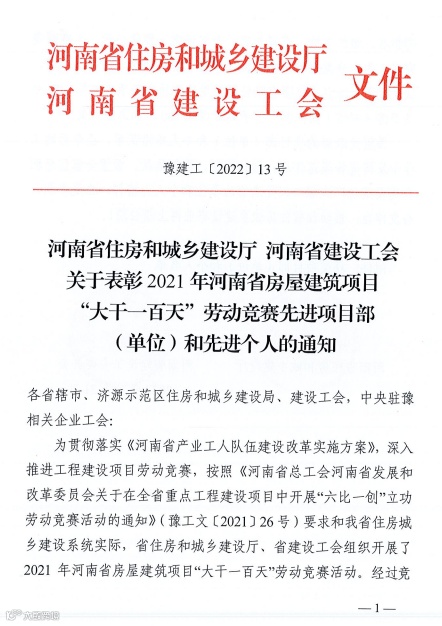 “河南省房屋建筑项目大干一百天劳动竞赛