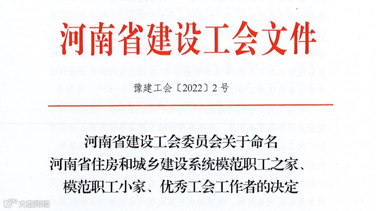 河南省住房和城乡建设系统模范职工小家荣誉