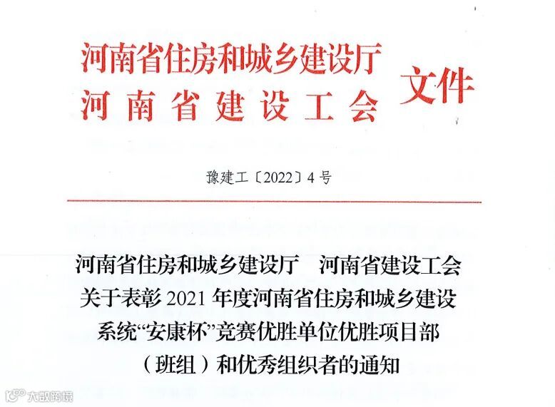 河南省“安康杯”竞赛优胜项目部称号