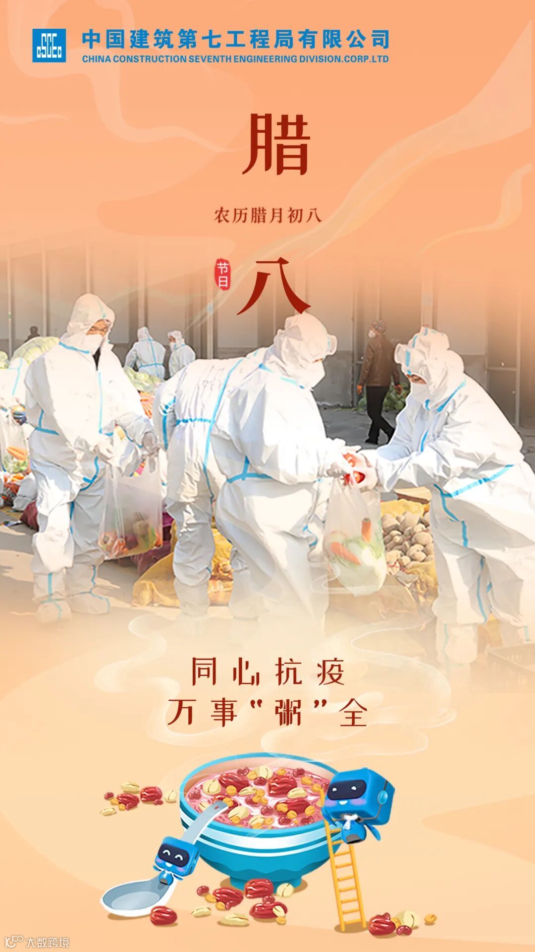 数字小镇项目“砺进·共赢”志愿服务队在项目核酸检测点出口处设置爱心粥棚,为刚做完核酸检测的职工和工友们送上精心熬制的腊八粥。现场秩序井然,大家喝着腊八粥,心里无比温暖。虽然疫情来势汹汹,但是关爱永不隔离。