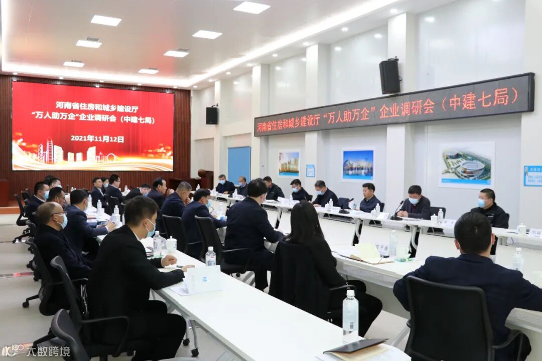 河南省住房和城乡建设厅办公室(研究室)、城市与建筑设计处、建筑市场监管处、城市建设处、工程质量安全监管处、科技与标准处处、建筑市场监管处等相关负责人;中建七局办公室(党委办公室)、产教融合办公室、南阳建校、财务资金部、市场营销部、商务合约部、工程部、金融部、总承包公司相关负责同志及“万人助万企”相关企业参加会议。