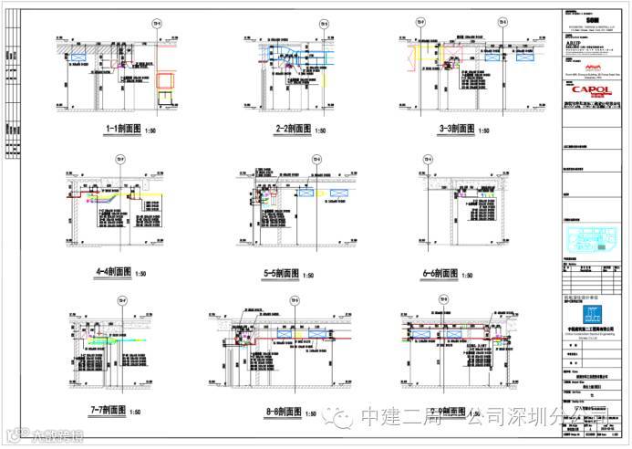 剖面图 : 剖面图在管线综合平面图审核通过后出图,对于管线复杂区域,起到辅助现场施工的作用。