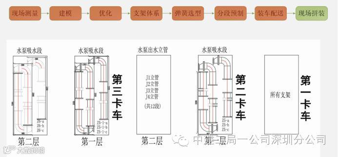 土建砌筑 →土建刮白 →重力排水管支架安装 →重力排水管安装 →冷冻水管支架安装 →冷冻水管安装 →风管吊架安装 →桥架支架及喷淋支架安装 →桥架及喷淋管道安装 →完成