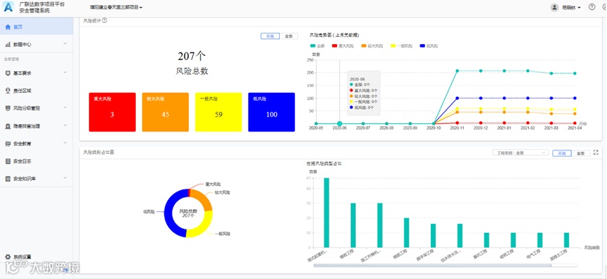 项目安全生产监督管理部编制了双重预防体系实施方案及相关管理制度,建立双重预防体系纲领文件。现场不同风险等级区域设置四色辨识牌,对易发事故警告警示,明确具体责任人及管控措施。现场每个楼栋均设置四色分布图及安全技术交底二维码,工人可扫描二维码进行安全交底培训,有效克服了作业人员多、流动性大等问题。现场安全员使用手机线上系统上传安全隐患整改通知单及风险辨识系统,实现了全员参与双重预防安全管理体系。