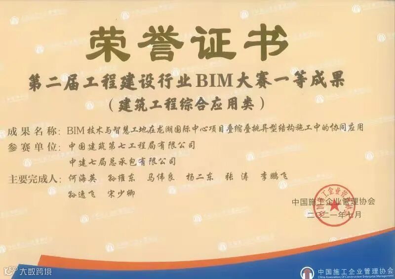 项目在施过程中大力推广BIM技术应用,先后荣获2021“Smart BIM”智建BIM大赛施工组一等奖、全国第二届工程建设行业BIM大赛建筑工程综合应用类一等奖、第十届“龙图杯”全国BIM大赛施工组二等奖、中建七局BIM大赛二等奖等诸多荣誉。