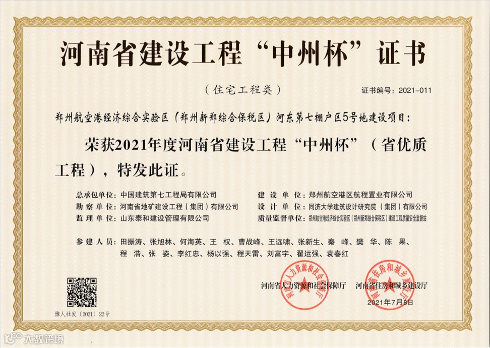 2021年自年初以来,郑州分公司深入践行新发展理念,持续推进分公司高质量发展,取得了丰硕的成果,先后获得河南省工程建设优质工程4项,河南省建设工程中州杯1项,省部级质量标准化示范工地2项。