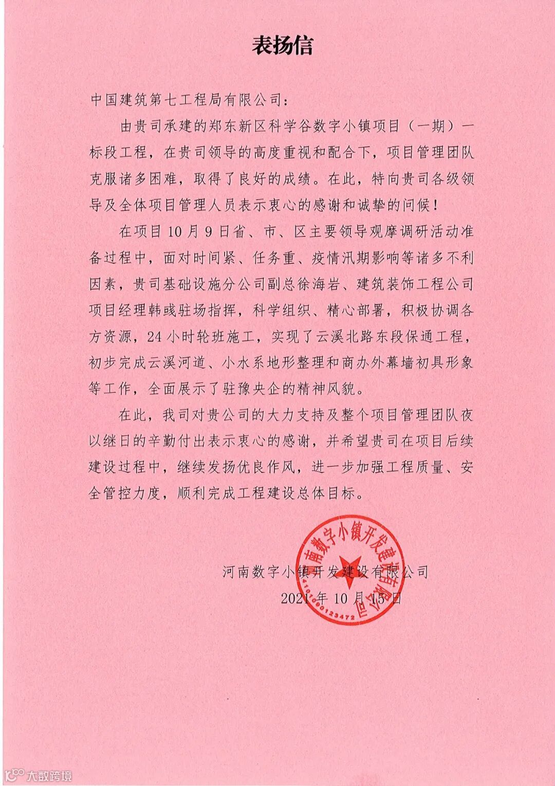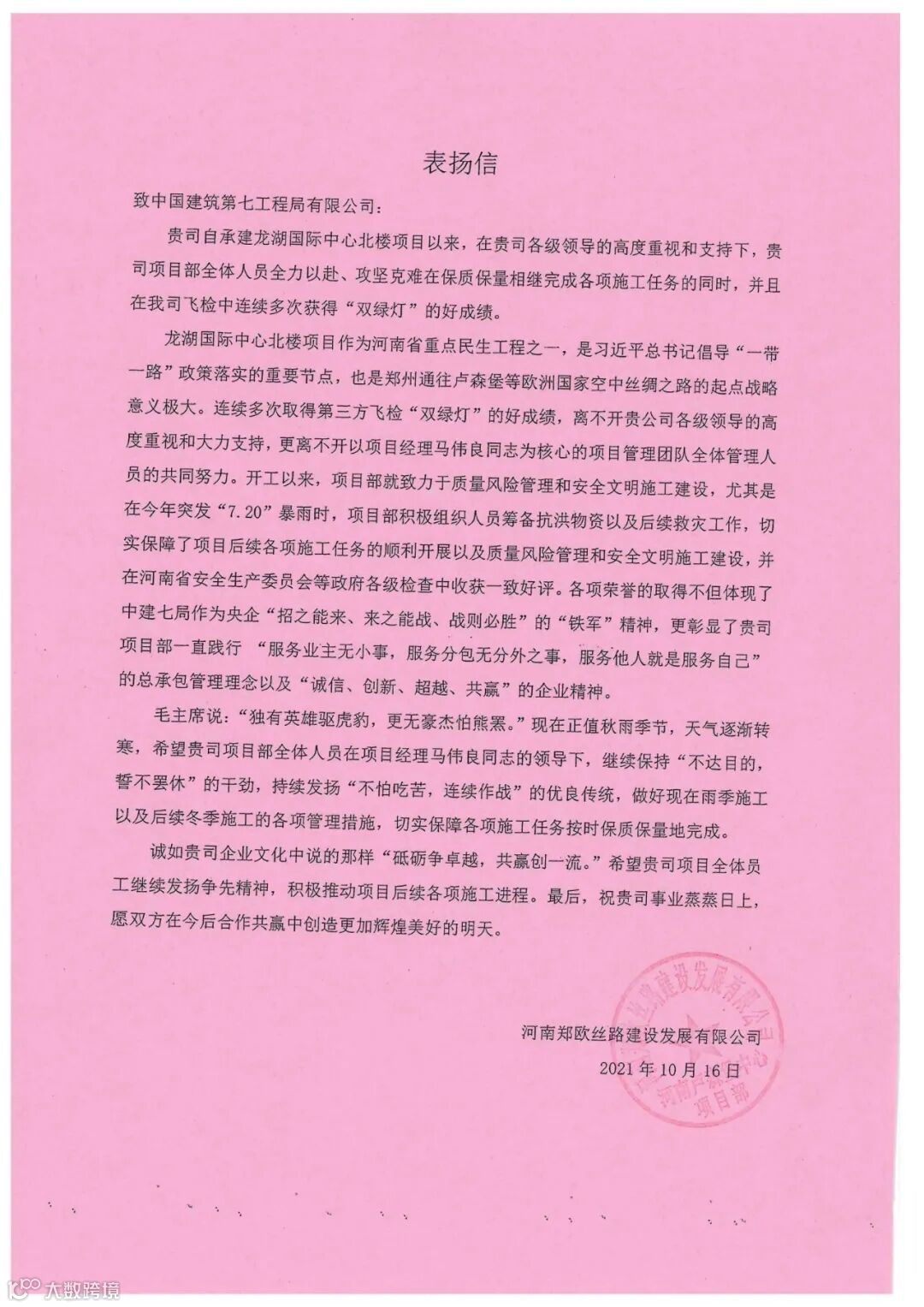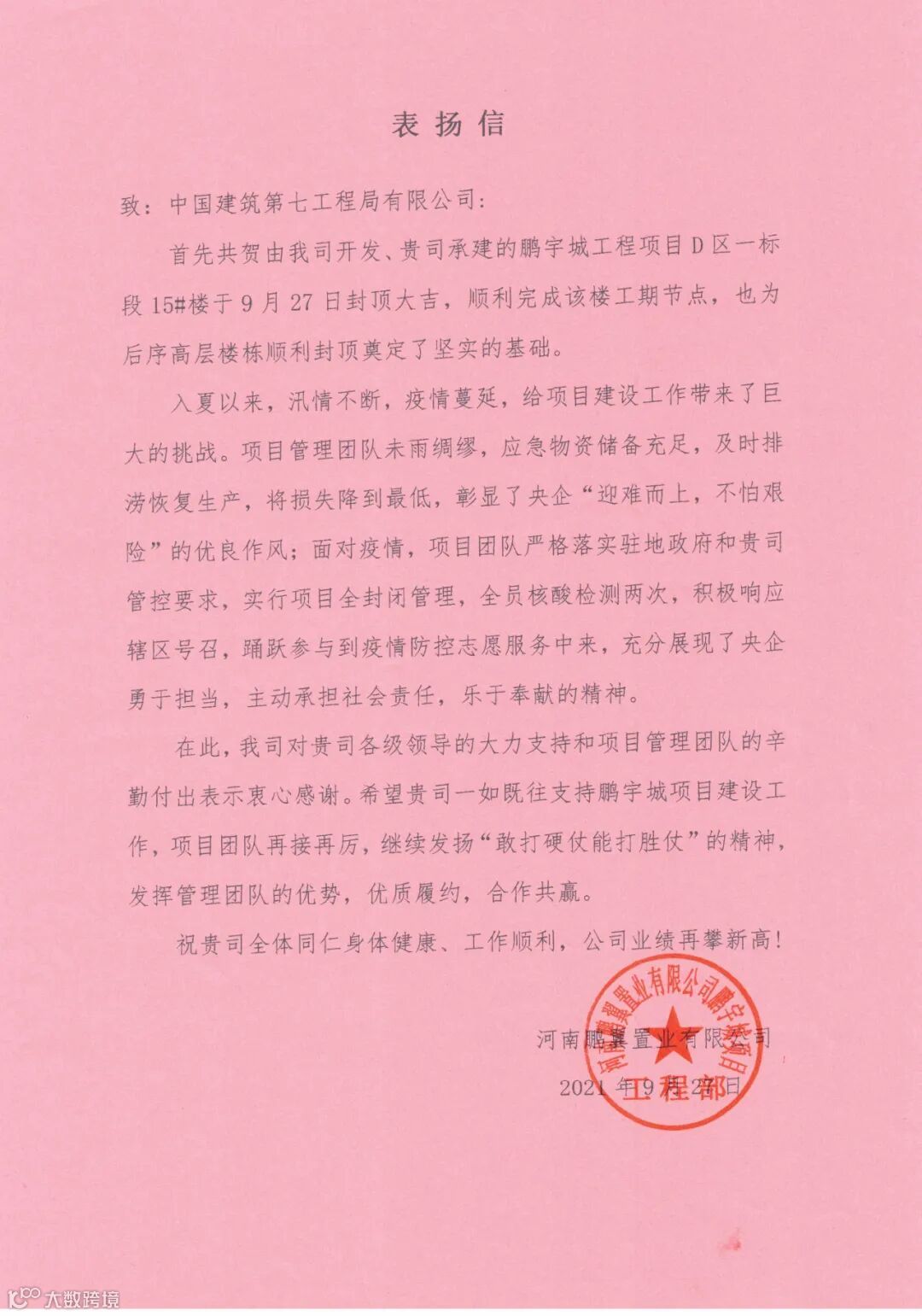 以上表扬信
