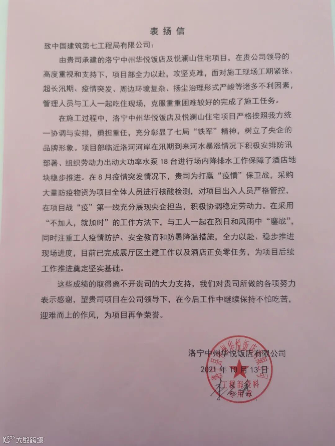 喜获业主表扬信