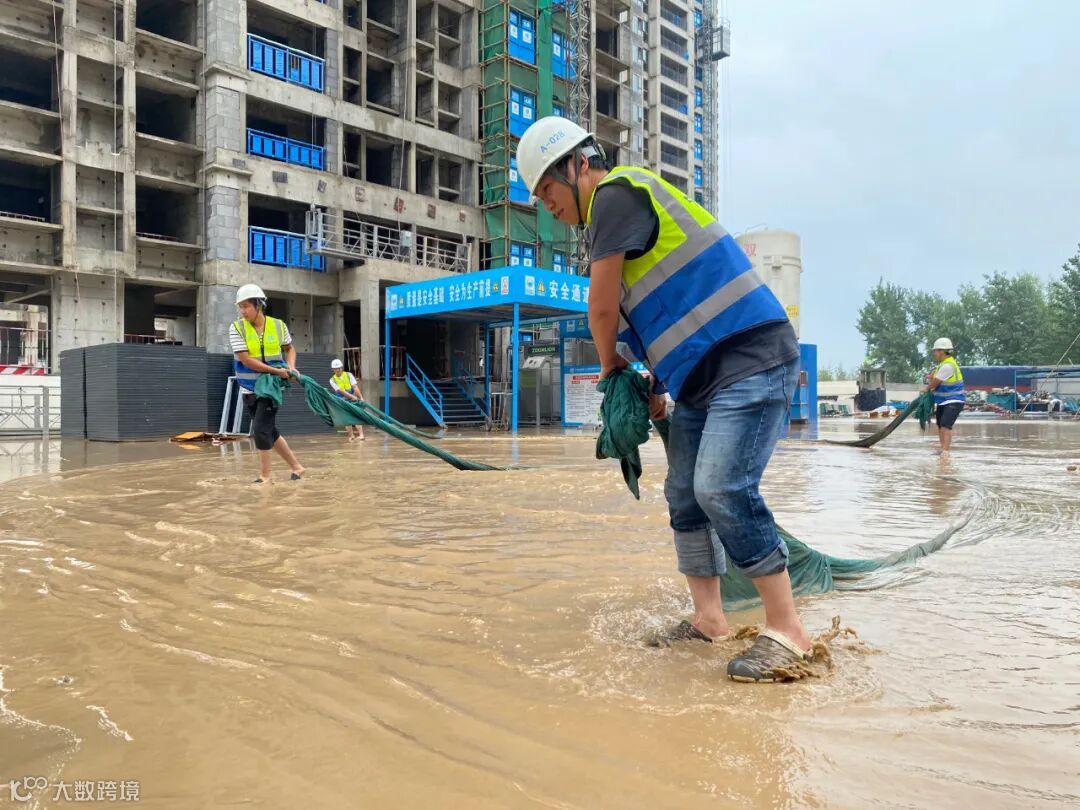 7月19日至20日,郑州港区南部遭受暴雨袭击,招商依云上城北苑项目反应迅速,为防止地下车库进水,组织人员及时用沙包土工布在车库入口设立防洪堤。由于降雨量过大,北门积水严重倒灌进工地,20日上午,项目全体管理人员冒雨在工地北门设堤挡水,同时现场启用6台水泵将工地积水抽出排入市政管网。截止7月22日早上,施工现场及地下室积水已排出80%。目前项目正积极组织全体管理人员及劳务人员清理淤泥、垃圾,对临边防护、电箱进行逐一排查, 保证尽快恢复现场施工,同时对生活区、办公区使用84消毒液进行全面消杀,保障人员健康安全。