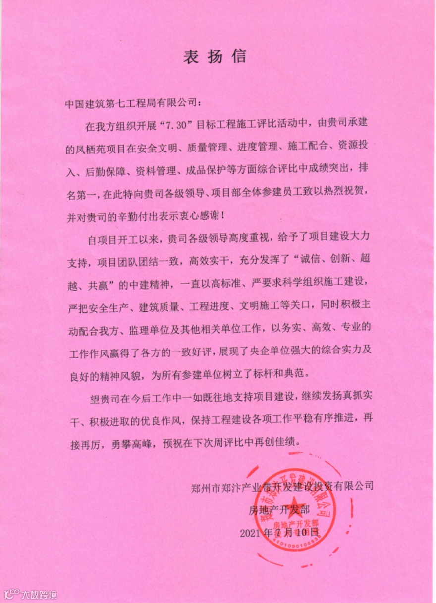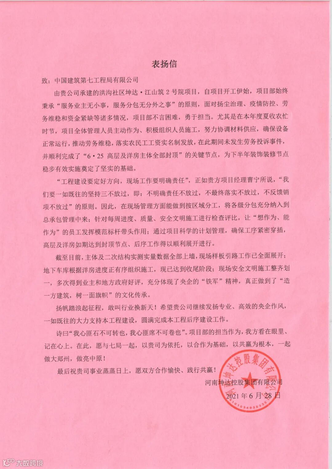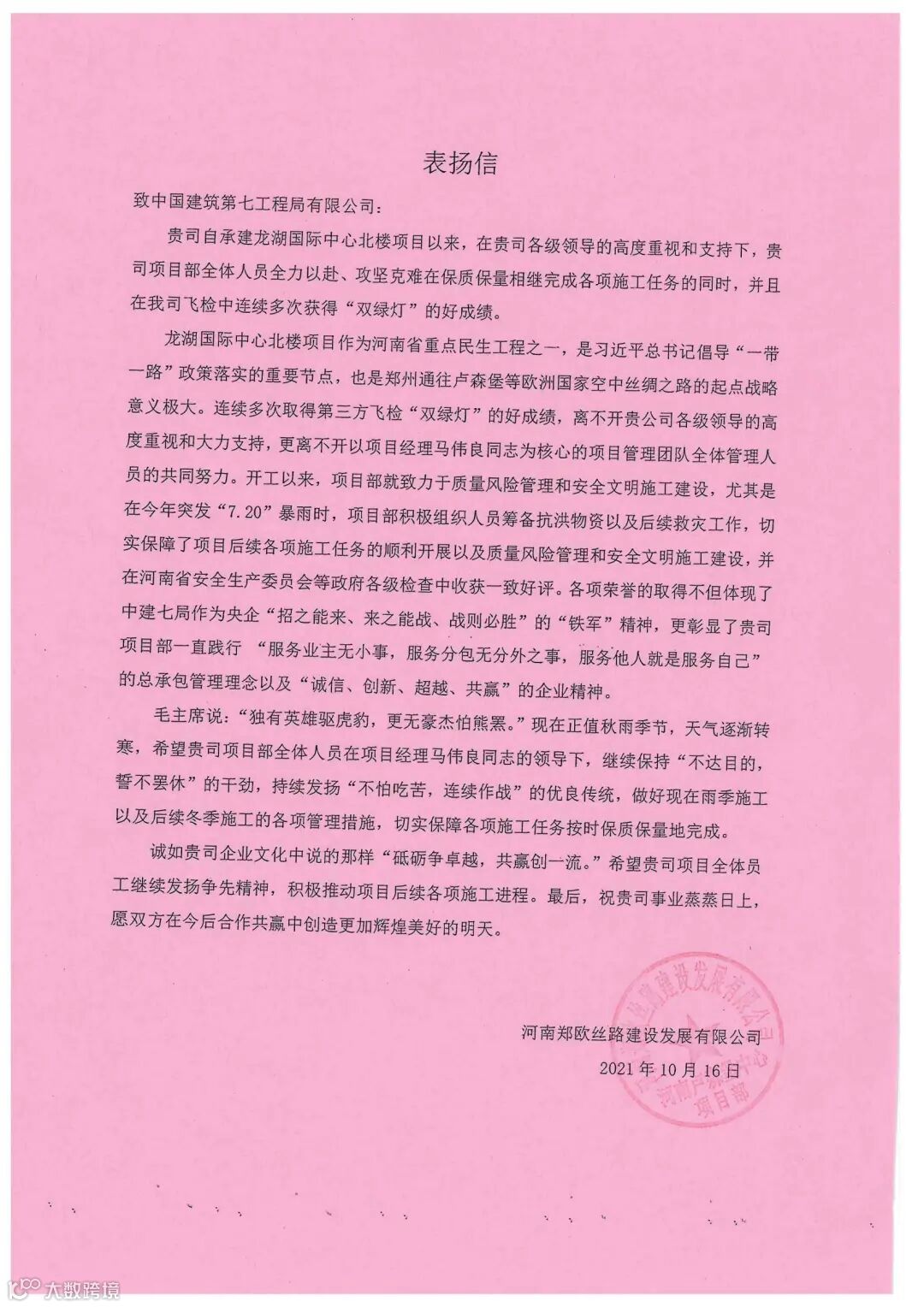 完美履约收获表扬信58封,做到了公司在册零投诉。