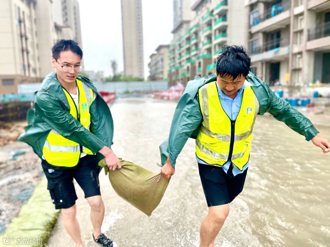 在“7.20 ”防汛救灾过程中,项目全员齐上阵,连续奋战48个小时,共计扛沙袋600袋,安放抽水泵23台,基坑周边铺设彩条布2000平方米,及时排除安全隐患32个,有效保护了现场材料物资安全,杜绝了各类安全事故的发生。