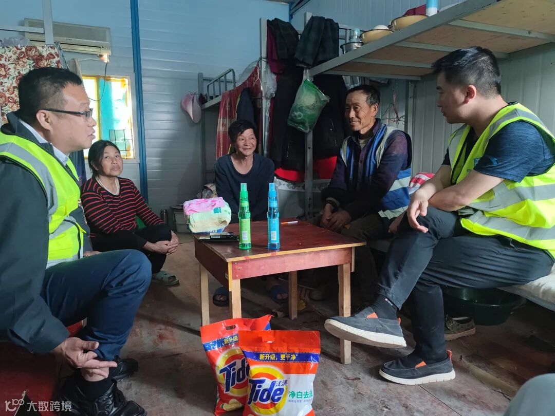 驻马店绿地酒店项目党支部开启了“小板凳连心站”活动,党支部书记刘玉国带领项目部管理人员,来到农民工宿舍为他们带去驱蚊水和日用毛巾,主动了解解决农民工工友工作、生活上存在的困难,目前已解决生活区用电、洗浴等问题 40 余项。
