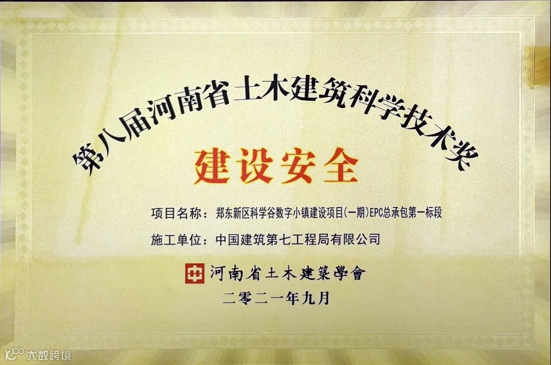 近日,数字小镇项目获得第八届河南省土木建筑科学技术奖(建设安全),该奖项是河南省土木建筑领域工程建设安全科技创新最高荣誉。下一步,数字小镇项目团队将继续锐意进取,开拓创新,不断提高安全生产技术与管理水平,为公司高质量发展做出更大贡献。