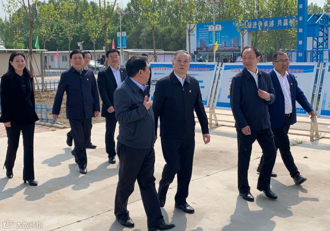 4月14日,许昌市委书记胡五岳到总承包公司河南分公司许昌体育会展中心项目调研。许昌市委常委、秘书长王志宏,副市长卢希望,市体育局局长李绍英,建安区委书记马浩等陪同。