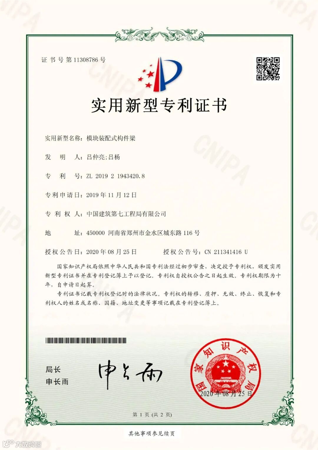 项目团队依托白仕琦劳模创新工作室,先后申报专利5项、工法1项,发表论文3篇,获得QC成果1项。项目经理白仕琦首创研发的“塔吊喷淋系统的关键技术”获国家实用新型专利,该技术不仅为本项目做好扬尘治理工作发挥了重要作用,还在建筑行业得到了普遍推广应用,为全民打赢“蓝天保卫战”贡献了积极力量。