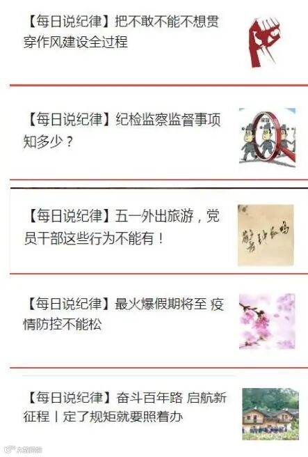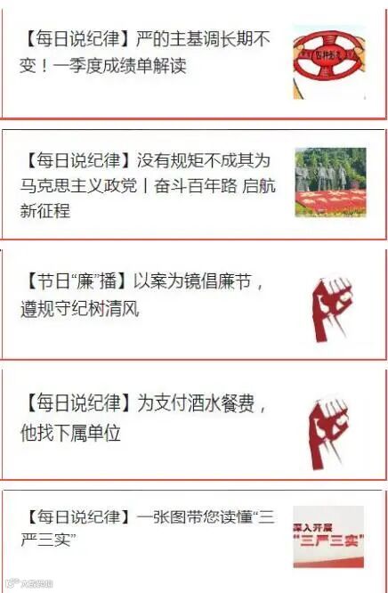 开辟微信推送主题模块,让《每日说纪律》成为常态,让《节日“廉”播》成为警示,呼吁员工更多的参与到廉洁文化的活动中去,提高底线思维,严守廉洁底线,绝不碰触纪律红线。