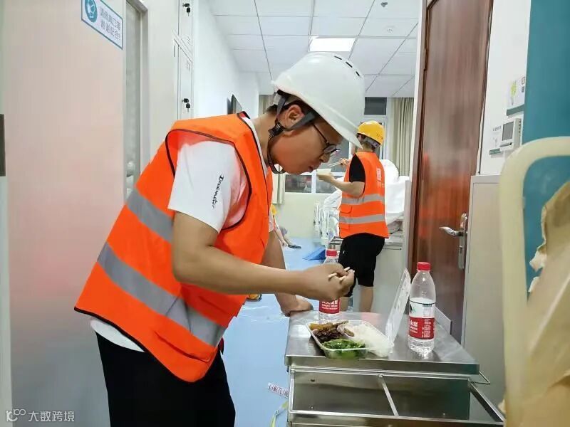 晚上19时40分许,百余名建设者,顾不上歇息,匆匆吃过送到施工现场的盒饭后,又投入到了1号、2号病房楼第4层的隔断装修改造施工之中。