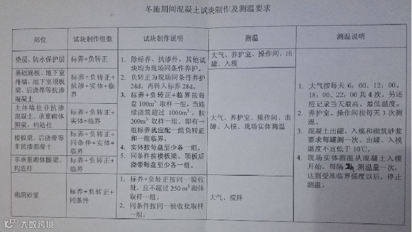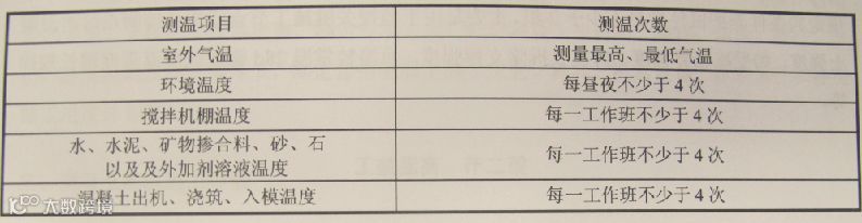 混凝土施工期间的测温频次