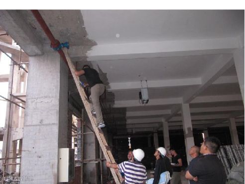该工程由当地建筑企业施工, 2010年11月份施工完小学体育馆二层楼面结构后,因工程质量及形象进度远达不到业主要求,被业主单位清除出场。工程处于停工状态。2011年初,新施工单位入场继续施工。