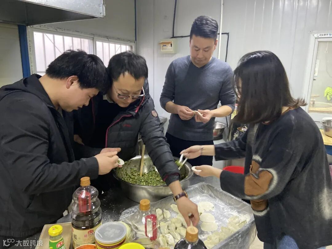 就地过年的员工们在一声问候、一碗饺子