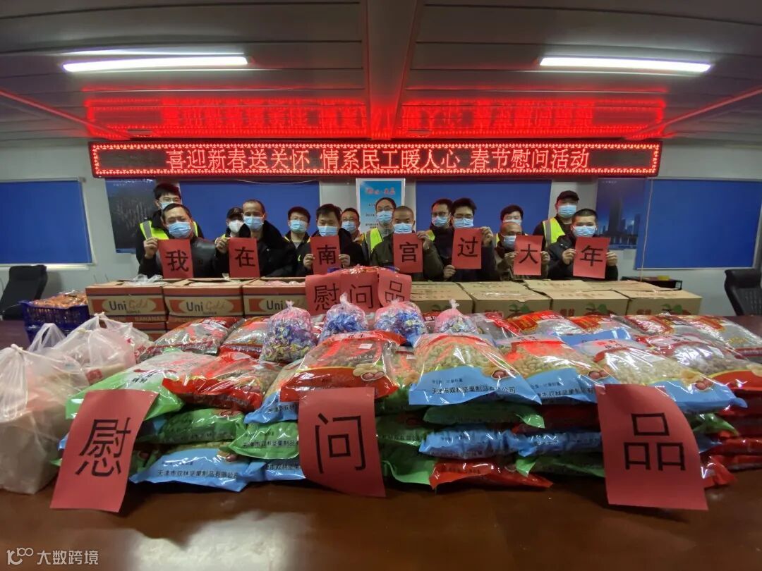 为让大家在工地也能过一个快乐祥和美好的春节,许信高速项目部党支部还特意为大家筹划了“九送一配”活动,即给每个劳务班组送一个价值800多元的慰问礼包,给“就地过年”的员工送一张新年合影、送一副新春对联、送一场文化联谊晚会、送一场新春宴席、送新春上门拜年、送一场体育比赛、送一次百科知识竞猜活动、送一次防疫宣讲。此外,还为留守的员工配备了探亲房20间。