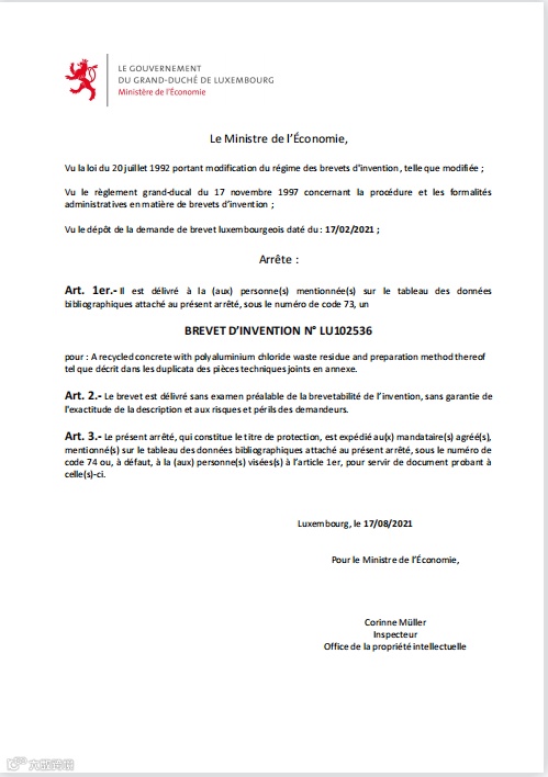 一种聚合氯化铝废渣再生混凝土,是一种利用聚合氯化铝产业产生的废料,经热活化处理后,替代部分硅酸盐水泥制备的一种环保混凝土;其制备方法简单、成本低,保水性较好,能够有效改善混凝土浆体泌水性和离析性能,同时具有内养护作用,可提高混凝土强度和抗收缩性能,在降低施工成本,减少环境污染等方面具有重要意义。该成果的成功研发,能够减少聚合氯化铝工业废料和建筑垃圾的堆放,实现废料资源化的同时,减轻了对自然环境的污染,降低了混凝土拌合物对水泥的用量,具有显著的经济效益和社会效益。