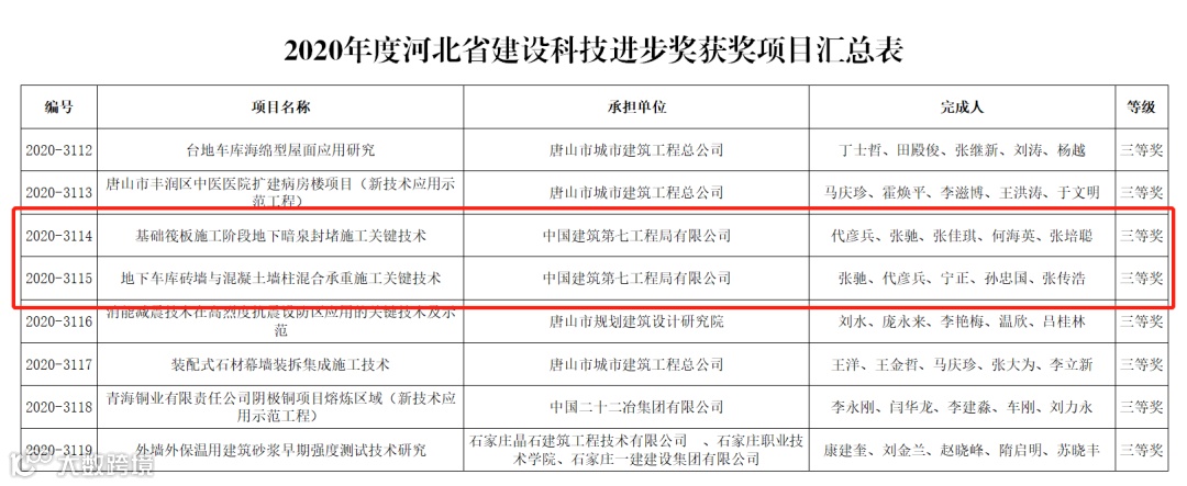 2020年度,华北分公司科技创新成果丰硕。获国家级科技奖1项、国家级QC成果3项、国家专利授权12项、省部级科技奖1项、省级科技进步奖2项、省部级QC成果26项、省部级BIM奖项3项、省级工法7项、论文25篇、河北省质量管理优秀企业1项、河北省质量管理省级个人奖项6项,在施4个项目同时荣获河北省“智慧工地”示范工程奖。