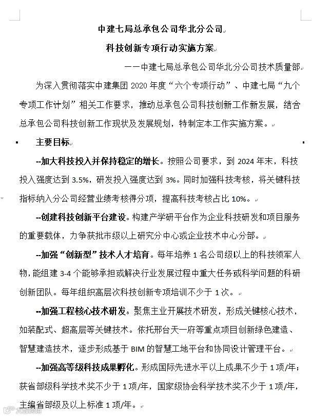 自成立伊始,华北分公司就始终把科技创新作为推动高质量发展的抓手之一。通过加强顶层设计,建立健全体制机制,落实目标责任制,强化监督考核,为分公司科技创新注入强大推动力,并以落实集团“六个专项行动”,工程局“九个专项工作计划”为着力点,力促科技创新专项行动落地生根,开花结果。