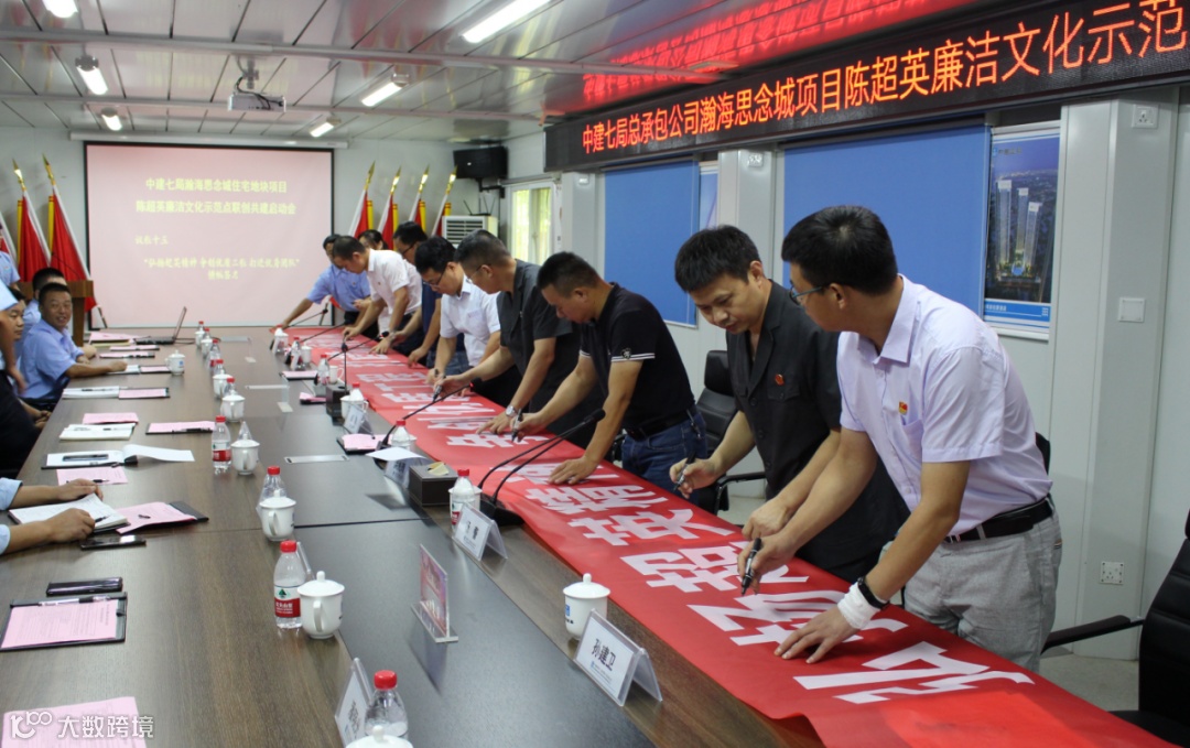 8月12日下午,中建七局总承包公司纪委联合郑州市金水区人民法院、河南新瀚海置业有限公司在中建七局瀚海思念城住宅地块项目部开展联创共建陈超英廉洁文化示范点启动会。