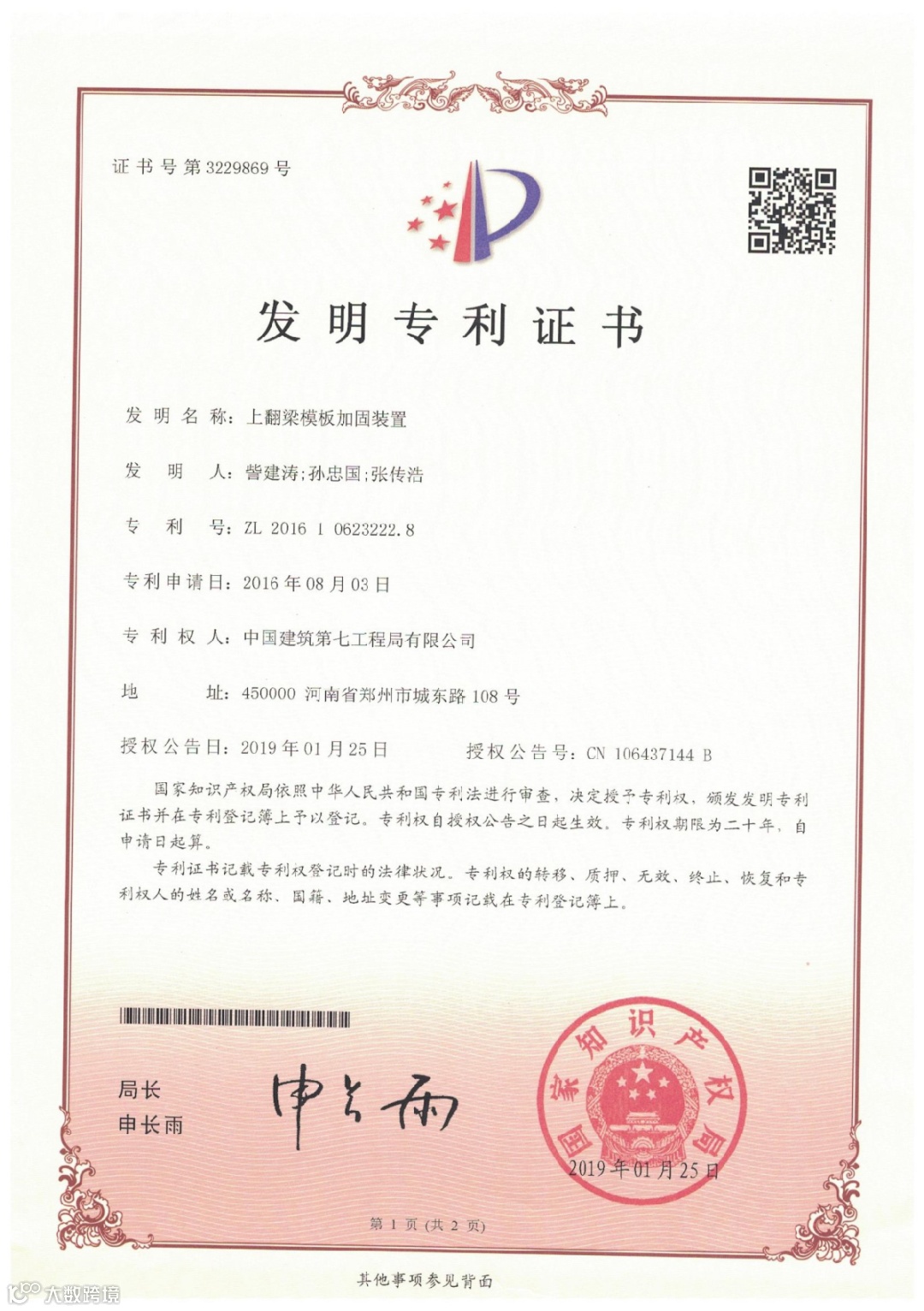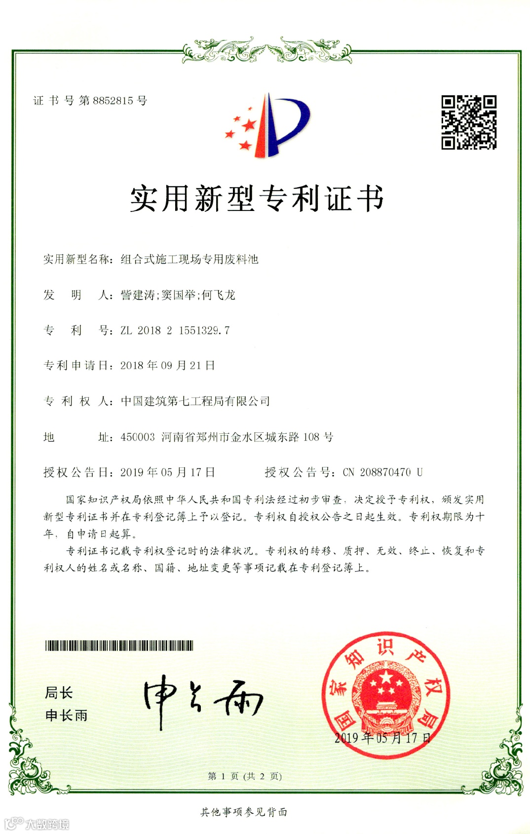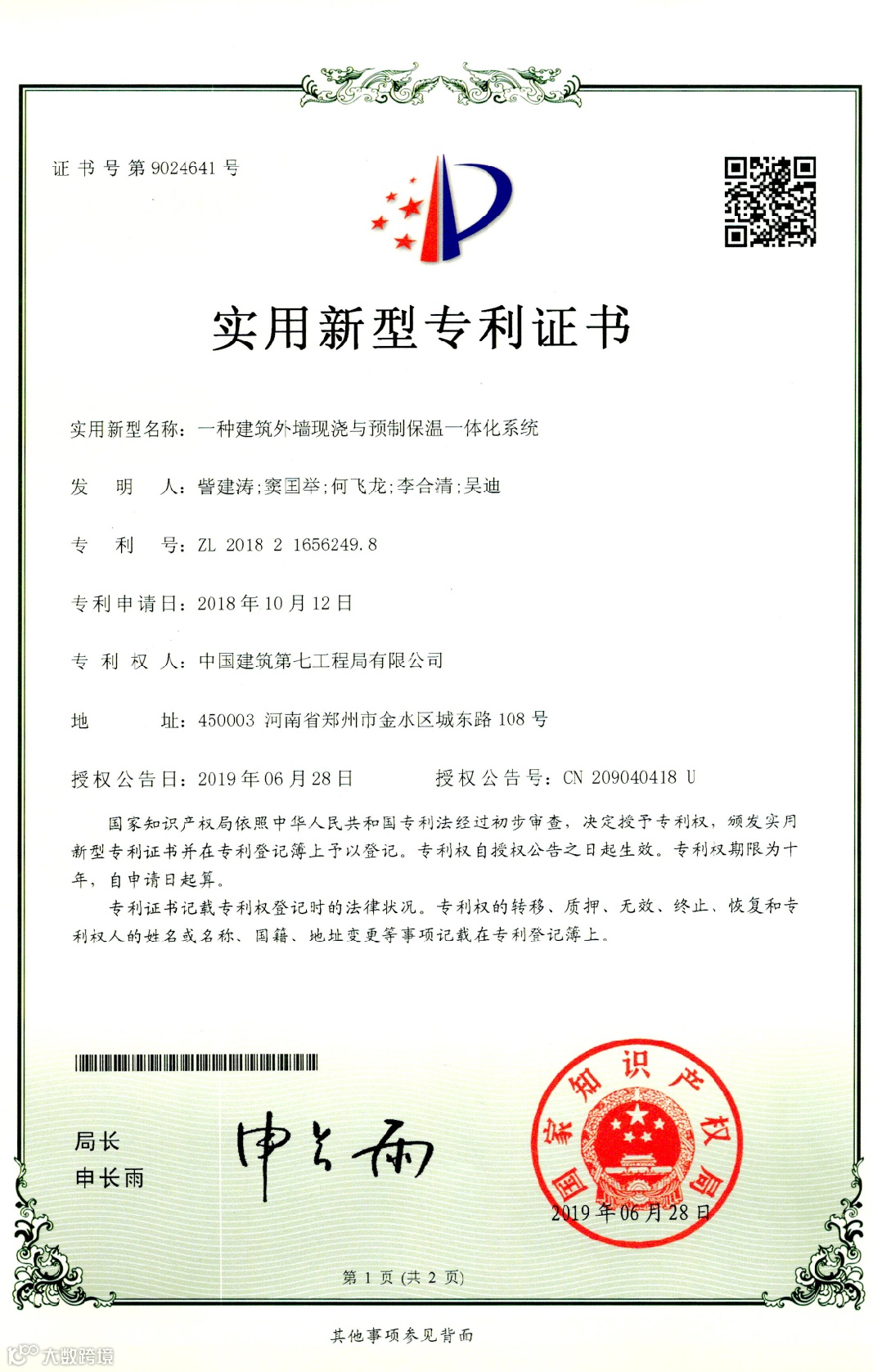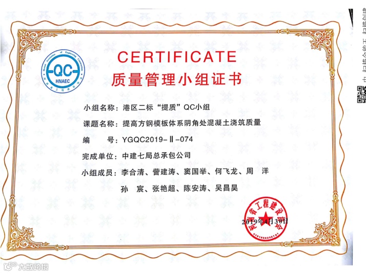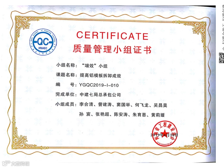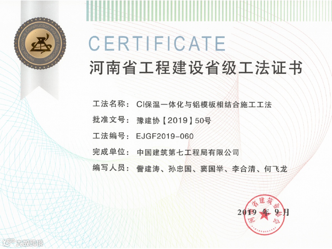 目前项目获得河南省建设厅科技奖1项,河南省工程建设科技成果特等奖1项,BIM国家级龙图杯优秀奖1项,授权专利17项,其中发明专利1项,河南省工法2项,发表中文核心论文4篇,中建七局十大创新成果1项,中建七局优秀施工方案1项。通过对主要工序全方位、深层次开展QC活动,提升了各分部分项施工质量,为顺利交房做好保障,获得国家级QC1项,河南省QC3项,河南省质量标准化示范工地1项。