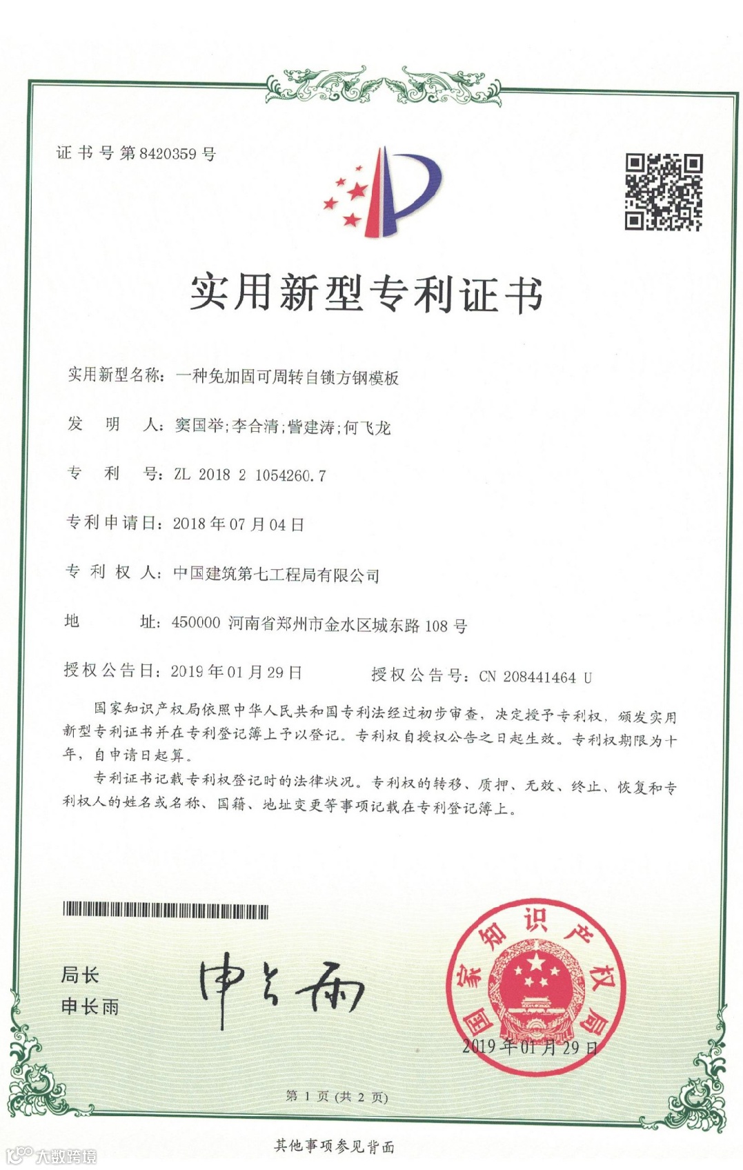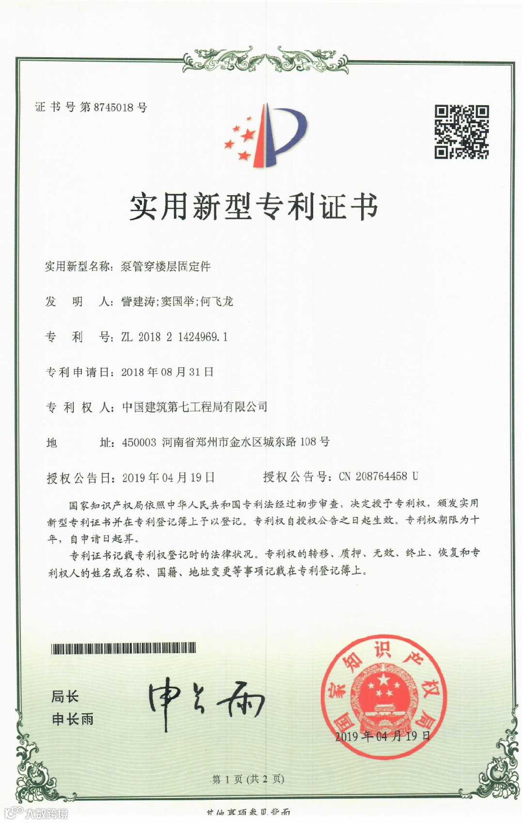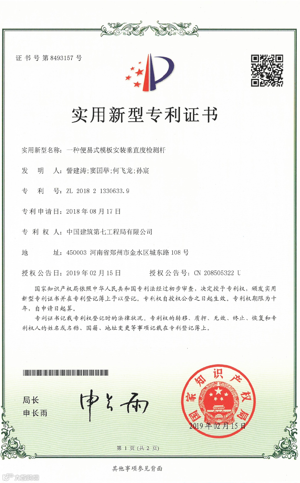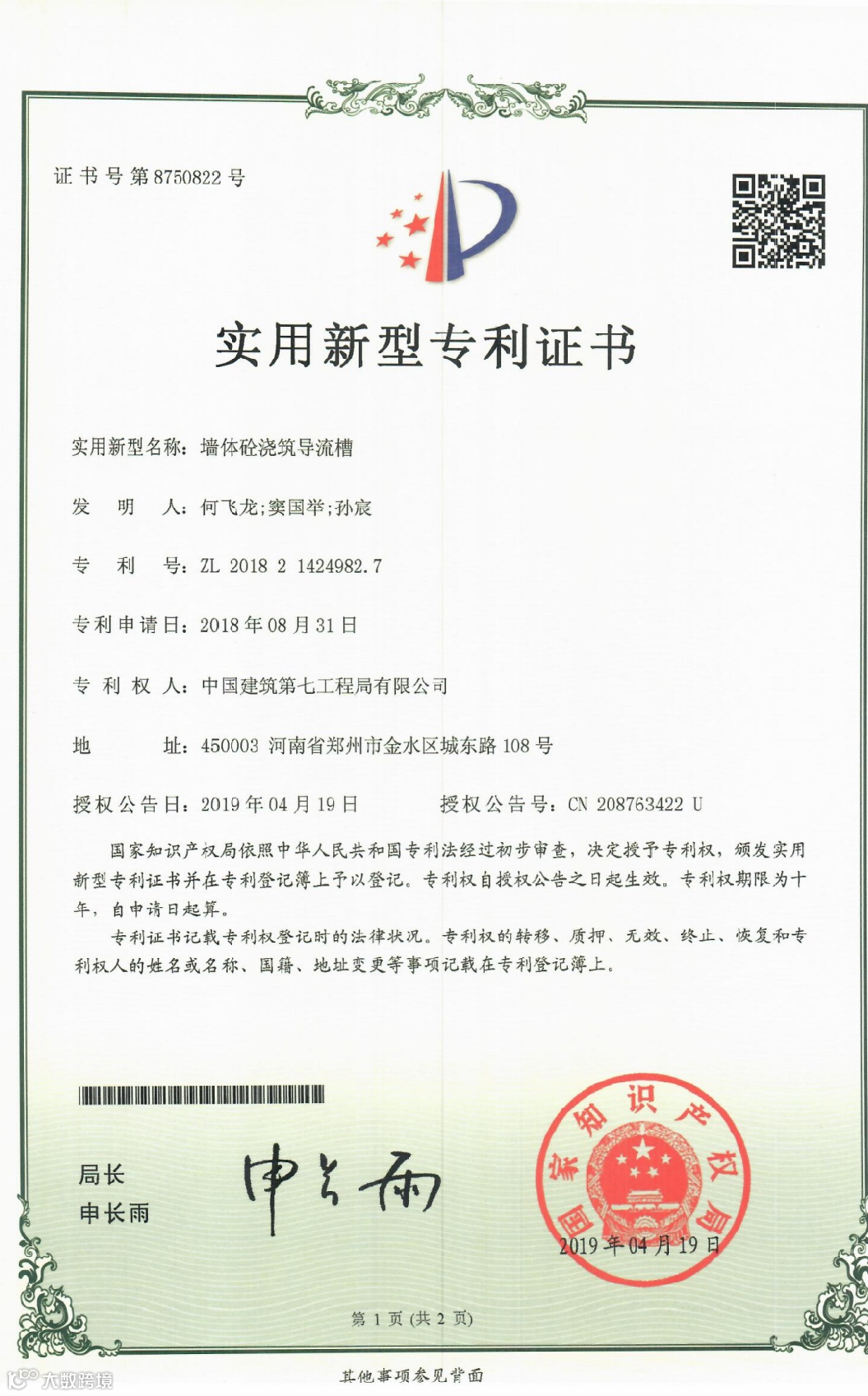 目前项目获得河南省建设厅科技奖1项,河南省工程建设科技成果特等奖1项,BIM国家级龙图杯优秀奖1项,授权专利17项,其中发明专利1项,河南省工法2项,发表中文核心论文4篇,中建七局十大创新成果1项,中建七局优秀施工方案1项。通过对主要工序全方位、深层次开展QC活动,提升了各分部分项施工质量,为顺利交房做好保障,获得国家级QC1项,河南省QC3项,河南省质量标准化示范工地1项。