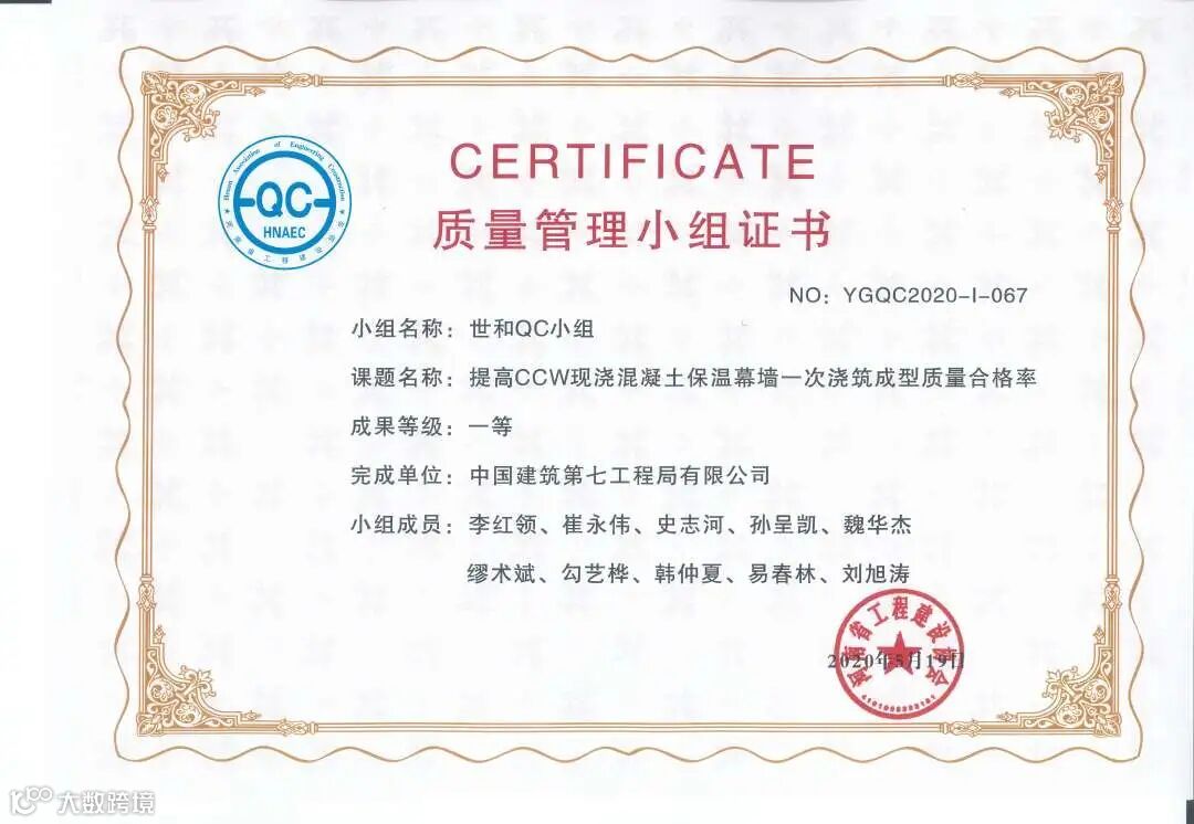 2020年,总承包公司QC成果在河北、陕西、四川等省市也取得不错的成绩。截至目前,总承包公司已在全国范围内累计获得省级QC成果一等奖18项,二等奖34项,并且有4项成果通过当地协会推荐至中国建筑业协会及中国施工企业管理协会参与国家级成果发布。