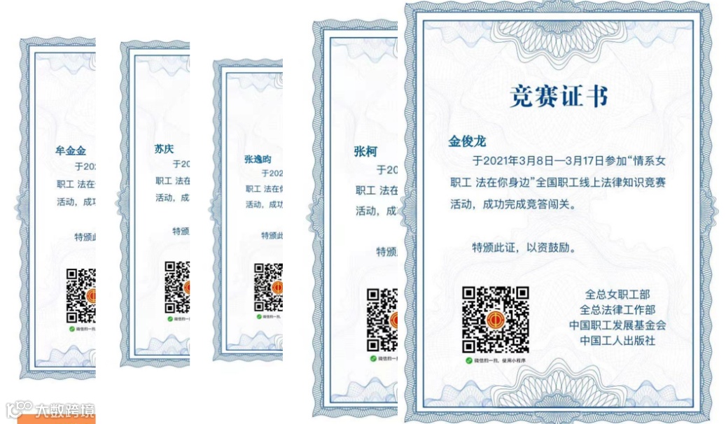 通过参与此次“情系女职工 法在你身边”全国职工线上法律知识竞赛活动,提高了自己法制观念,增强了辩别是非和自我保护、自我防范能力。