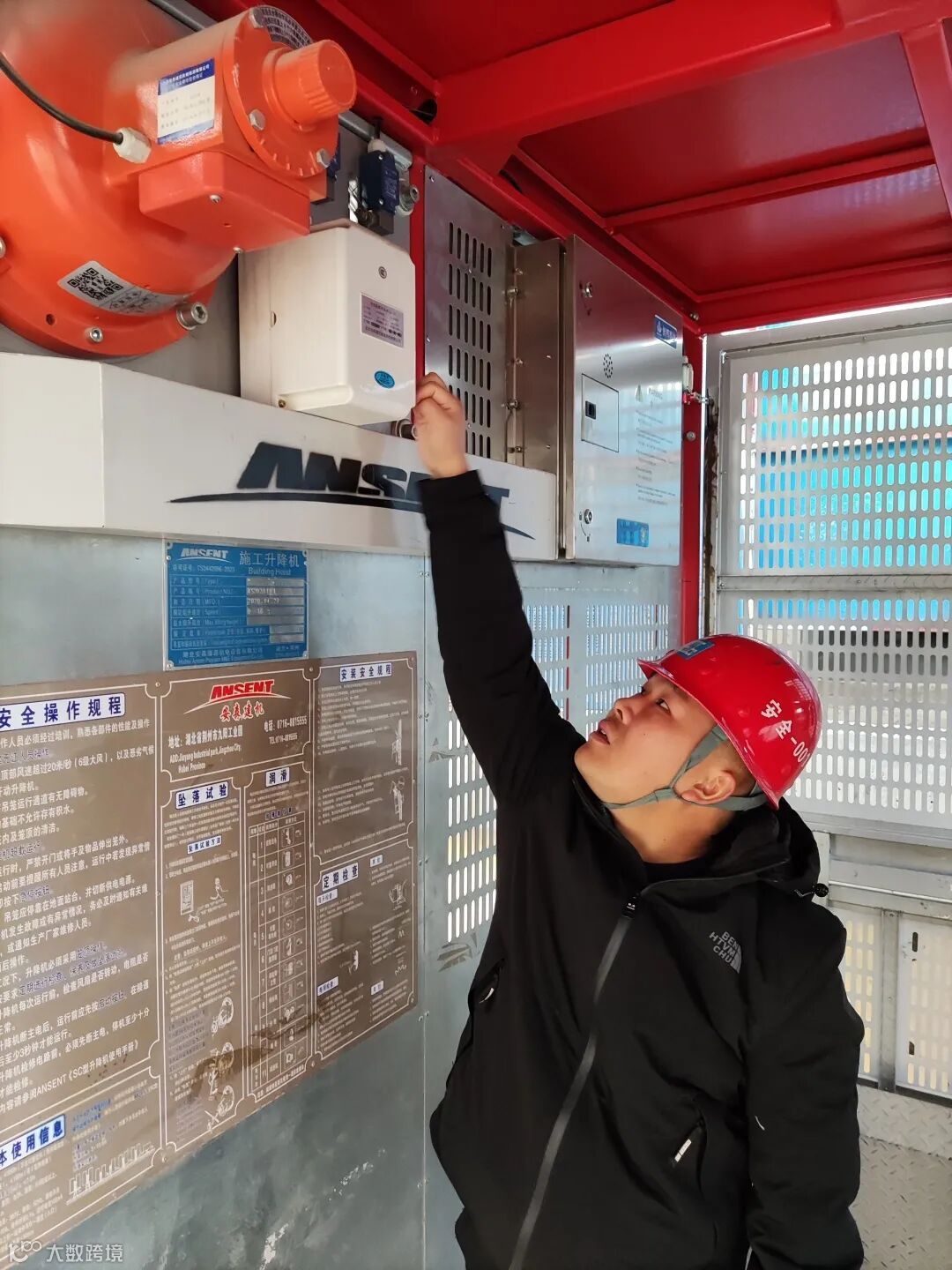 他们头戴红色安全帽、身披红色马甲