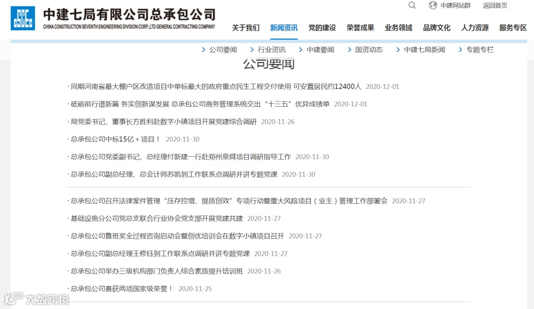 设置“公司要闻、行业资讯、中建要闻、国资动态、中建七局新闻、专题专栏”六个子栏目。其中,“公司要闻”和“行业资讯”展示企业和建筑行业最新新闻资讯,“中建要闻”“国资动态”“中建七局新闻”分别链接集团网站相关页面和中建七局网站相关页面,“专题专栏”展示十九届五中全会精神学习内容。