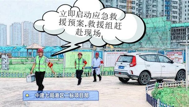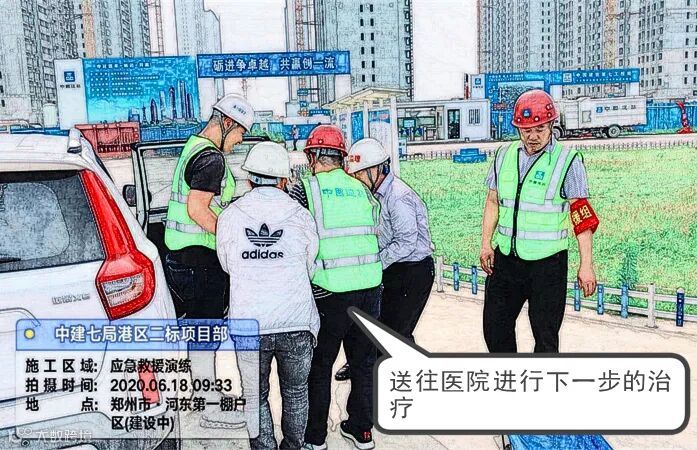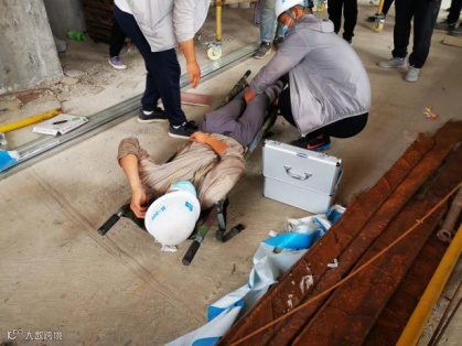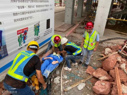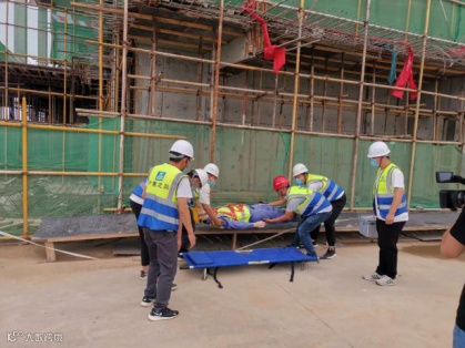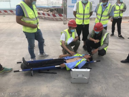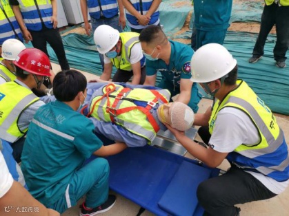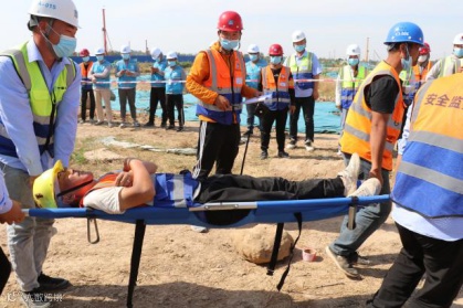 这是发生在港区二标项目触电应急救援演练现场的一幕。同港区二标项目一样,自6月份以来,总承包公司各项目开展了多种形式的应急演练。