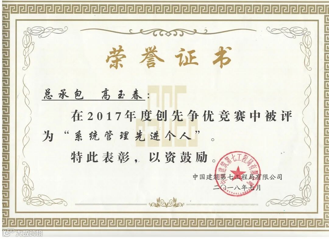 中东分公司被评为中建七局十强分公司