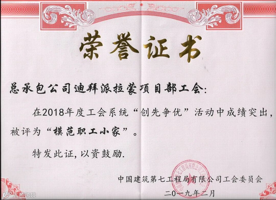 不仅如此,中东分公司所属项目还先后荣获中建集团“工人先锋号”、中建七局CI金奖等各级荣誉70余项,发表国家级论文6篇,在省部级以上媒体发表宣传报道近40余篇。