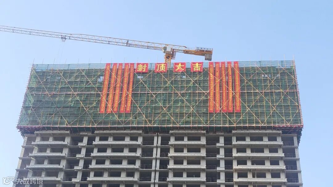 新郑新区万福大厦东楼项目1#楼封顶,比计划提前了半月完成里程碑节点。