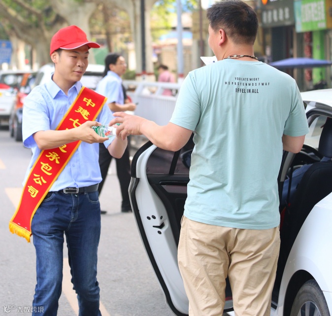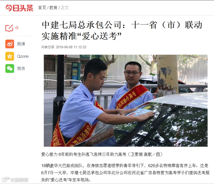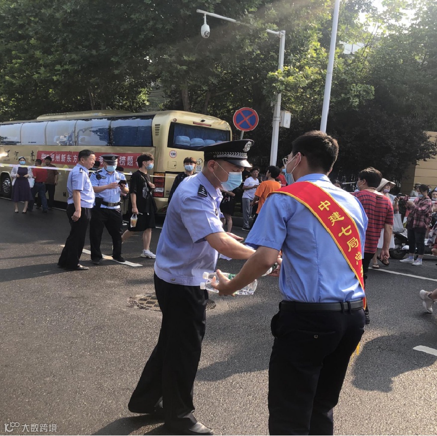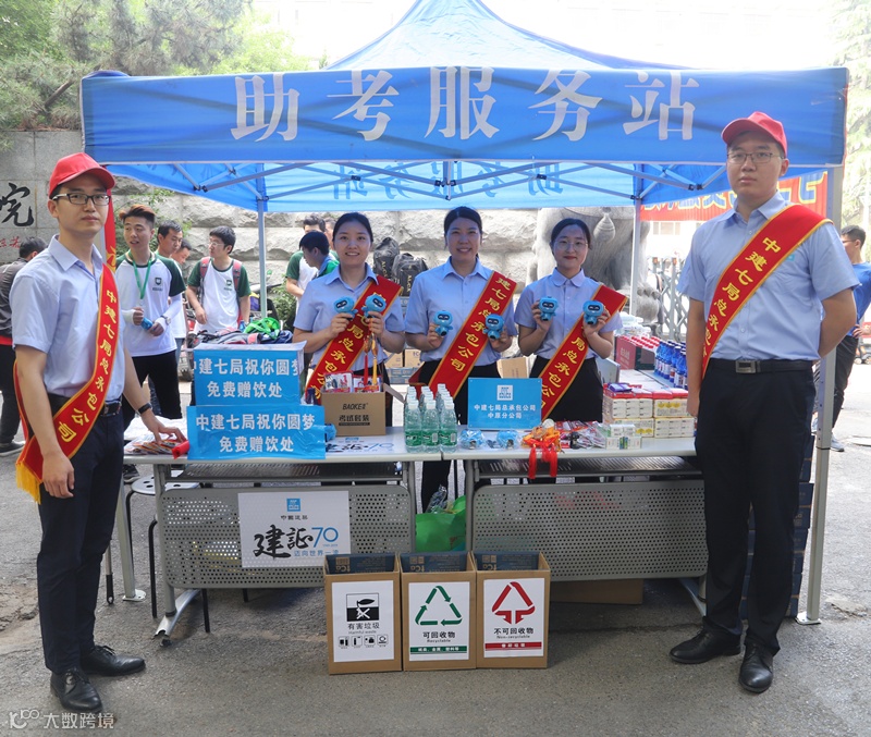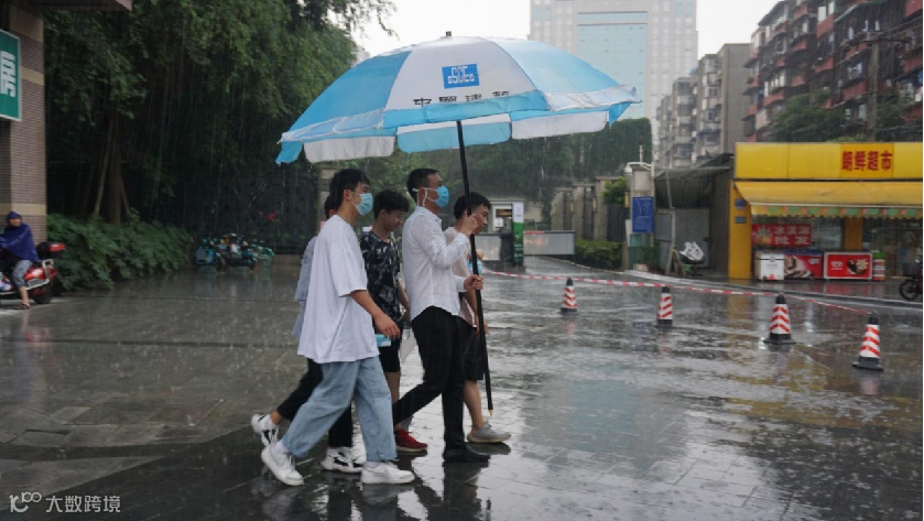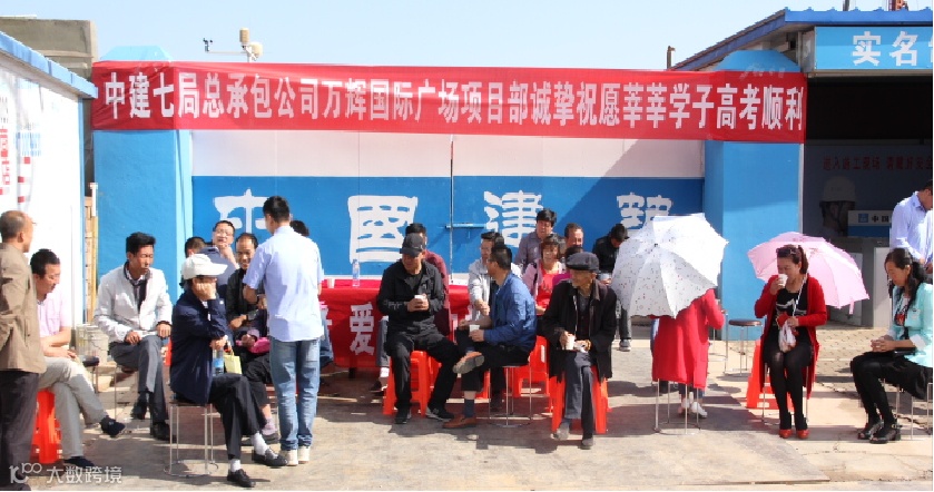 为雨中的考生撑起中建蓝