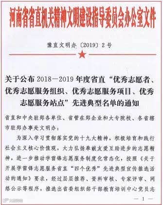 获评河南省直“优秀志愿服务项目”