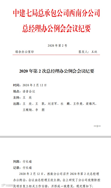 一是确保精神下达无遗漏。及时接收、整理驻地政府和工程局、公司关于疫情防控及复工复产相关文件,通读加细筛,划出重点以便宣贯参考。