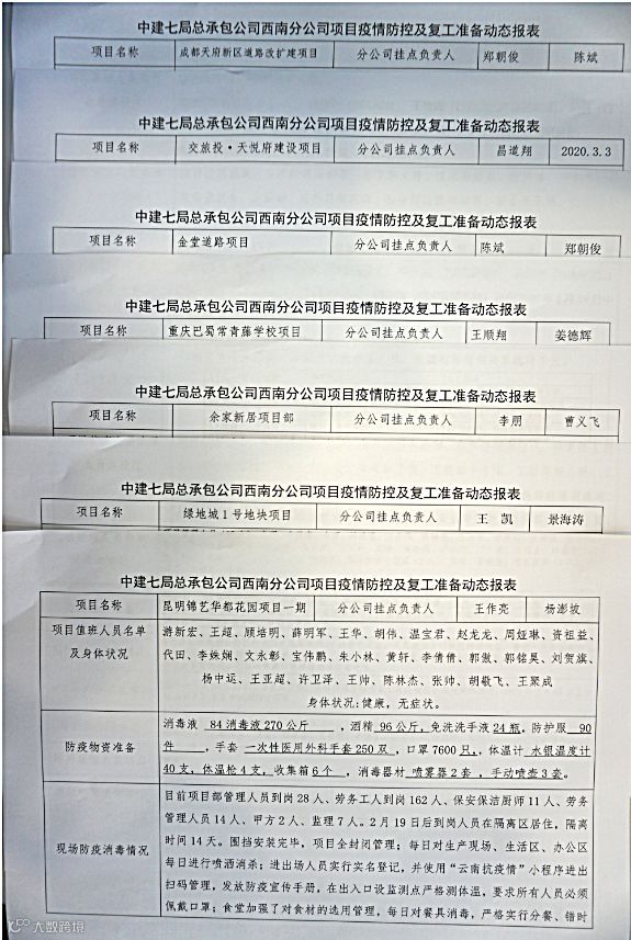 疫情来势汹汹,行动迟缓就得“打板子”。西南分公司迅速成立以党总支副书记杜鹏为组长的纪检监督小组,认真执行“提醒”和“抽查”机制,严肃报告纪律。自2月10日起,监督小组每天“提醒”分公司项目挂点人员、项目负责人上报《项目疫情防控及复工复产动态表》,并由项目监督人员对上报各项信息进行“抽查”,一旦发现有漏报、错报现象,即刻进行通报,并持续监督项目后续完善情况,强化联防联控。