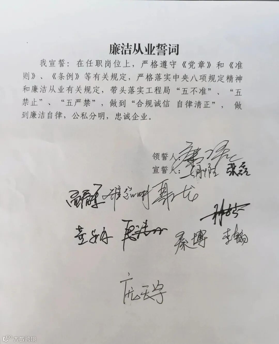 廉洁宣誓。广宗教育园区项目领导班子及关键岗位人员在国旗下庄严宣誓,作“合规诚信,自律清正、公私分明、忠诚企业”的承诺。