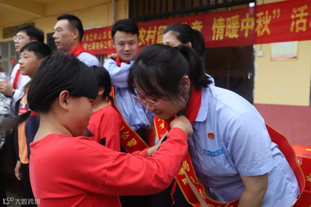 为志愿者戴上红领巾
