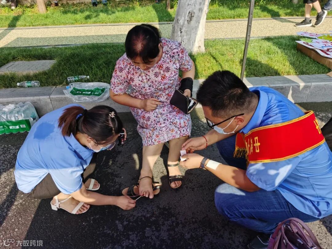 在郑州市第十一中学附近,一名考生家长找到了总承包公司的爱心送考志愿者刘晓丹、赵铭彦求助。发现家长脚受伤后,两人快速对其进行了消毒包扎,血止住了,考生家长的脚恢复了知觉,激动地说,“谢谢你们,你们是最美的!”