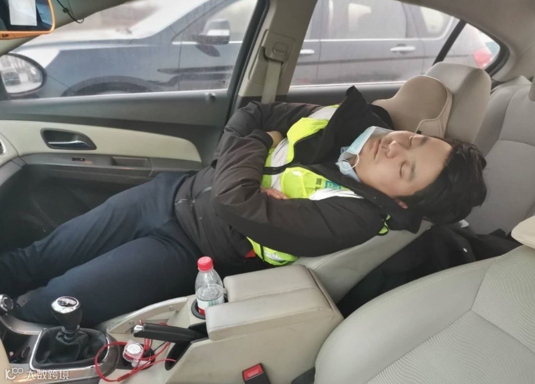 熬了一天一夜的岳松峰在车上睡着