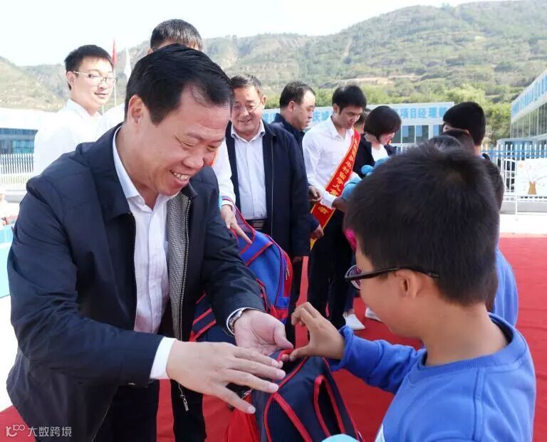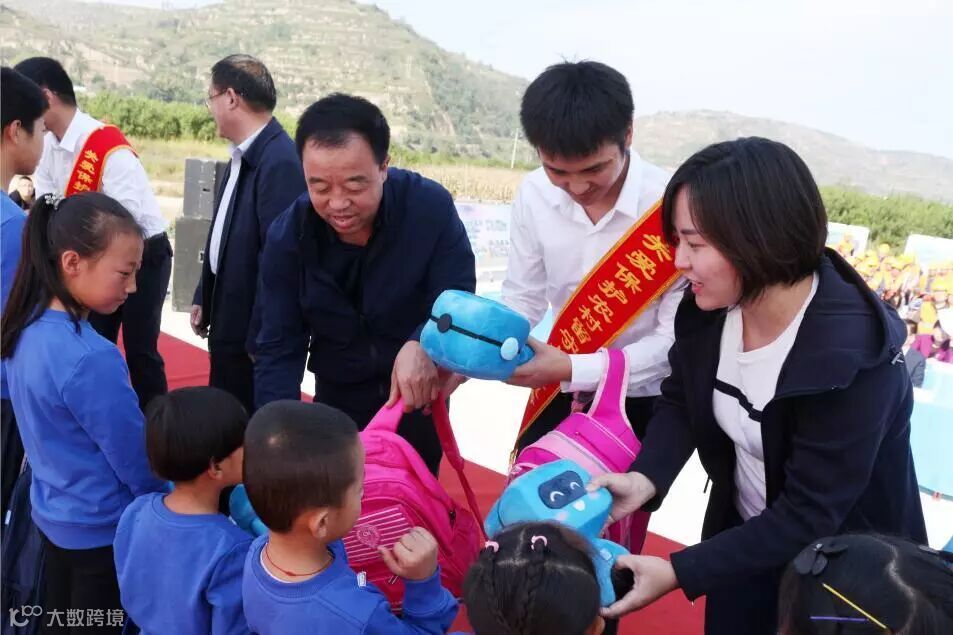 给农村留守儿童发放纪念品